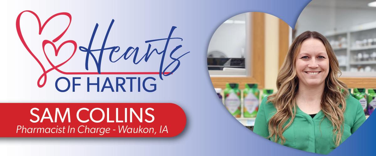 Today, we’re proud to introduce Sam Collins, our Pharmacist in Charge at our Waukon, Iowa location, as one of our Hearts of Hartig.